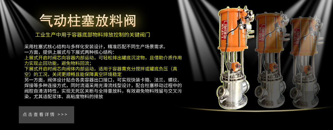 气动柱塞放料阀是工业生产中用于容器底部物料排放控制的关键阀门,凭借其结构设计与功能特性,广泛适配化工、制药、石油石化、食品发酵等多行业的严苛工况